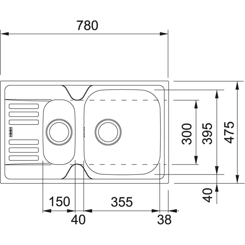 | Размер мойки | 780 x 475 мм |