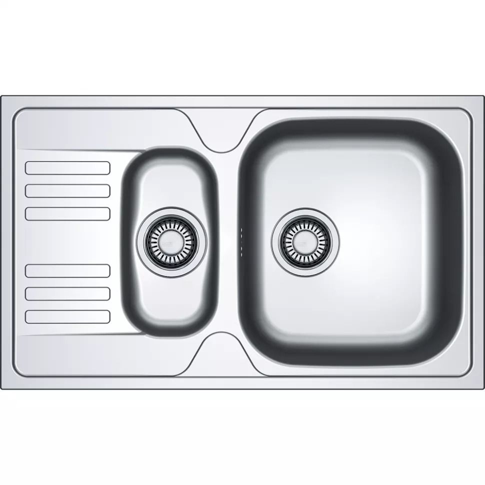 Мойка для кухни из нержавеющей стали Франке Euroform EFN 651-78 шириной 78 сантиметров. Двухсекционная модель с матовой поверхностью представлена с оборачиваемой чашей. Раковина прямоугольной формы подходит для монтажа сверху столешницы.