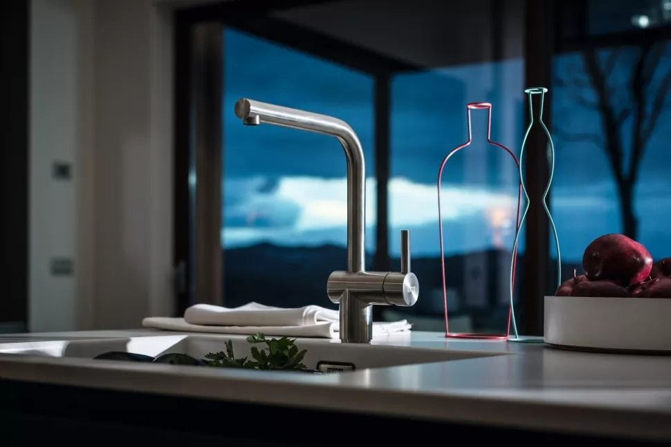 Смеситель Franke Atlas Neo нержавеющей стали с поворотным изливом, многоуровневым аэратором, боковым рычагом управления. Возможность установки рычага управления слева или справа. Современный дизайн, высокий корпус, отличная эргономика. Для комфортной эксплуатации излив поворачивается в любую сторону на 180°. Оснащается ламинарным потоком, что обеспечивает мягкое течение воды без разбрызгивания и пульсаций.