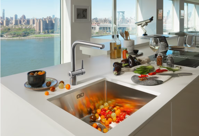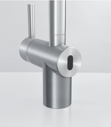 Смеситель Franke Atlas Neo Sensor с поворотным изливом изготовлен из нержавеющей стали. Включается вручную с помощью рычага или бесконтактным способом. Инфракрасный датчик реагирует на движение рукой в зоне экрана на расстоянии 5-10 см и мгновенно включает/выключает воду. Функция сенсорного управления удобна при обработке продуктов и приготовлении пищи, так как при этом происходит многократное включение и выключение воды. Это позволяет снизить расход воды, например, при мытье рук. Бесконтактное и ручное управление работают независимо друг от друга. Для удобной эксплуатации излив поворачивается на 180°.