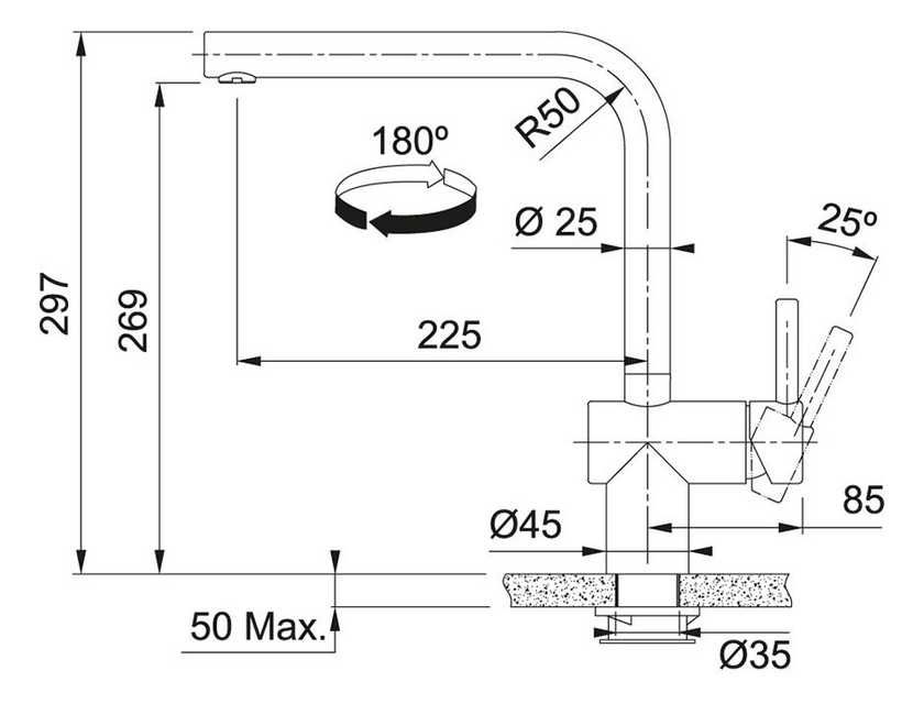| Угол вращения излива | 180 ° |