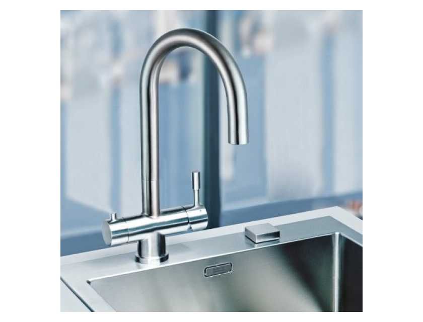 Смеситель Franke Eos Clear Water из нержавеющей стали воплощает в себе изящный стиль и современные технологии. Модель с функцией фильтра для воды подходит для тех, кто заботится о своем здоровье. Дизайн в стиле "хай-тек" позволяет разместить кран на кухне с минималистичным интерьером.