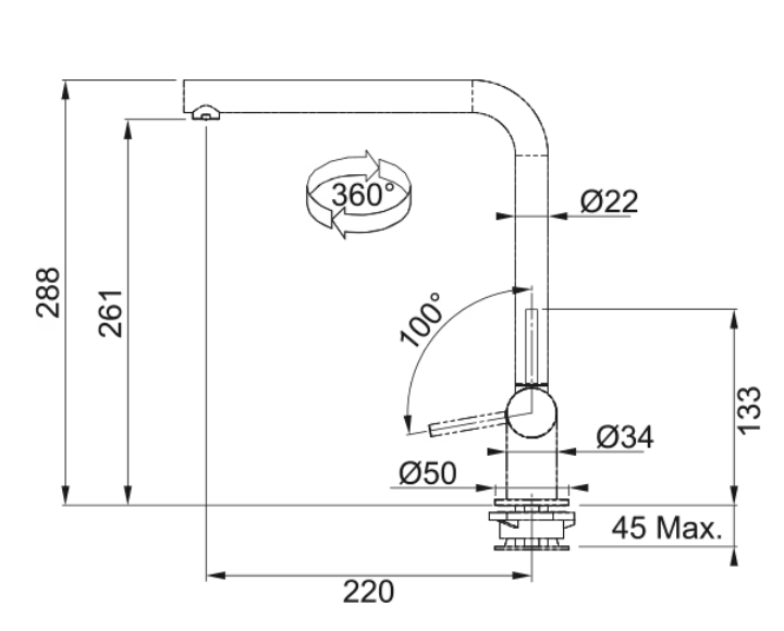 | Угол вращения излива | 360 ° |