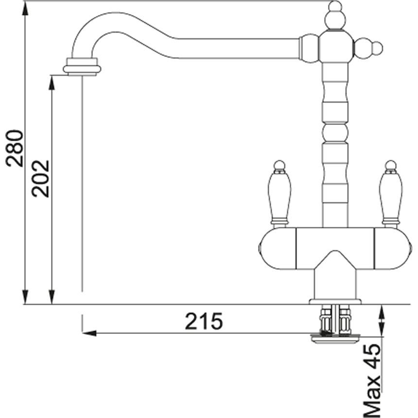 Винтажный кухонный смеситель Franke Old England с поворотным изливом станет эффектным элементом декора классической кухни и кухни в стиле Кантри. Модель с двумя ручками управлением, неограниченным углом поворота 360° и высоким изливом обеспечивает высокую функциональность на кухне. Изделие будет прекрасно смотреться в кухне средних габаритов в сочетании с мойками из Fragranite, в наличии цвета бронзы, меди и золота.