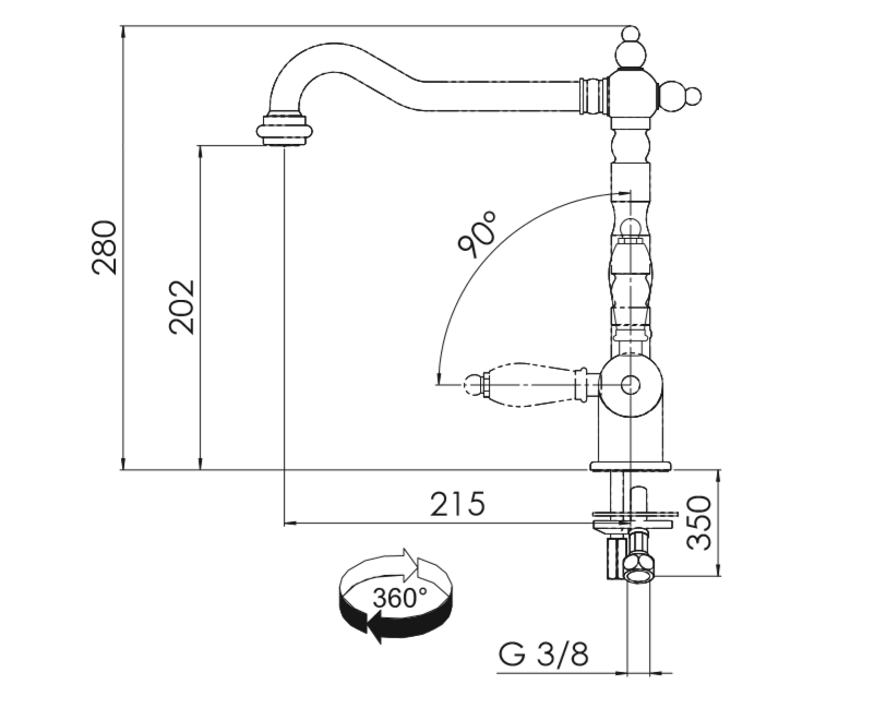 - Угол поворота излива 360°