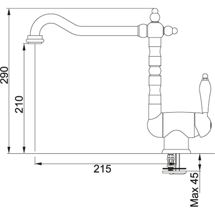 Винтажный кухонный смеситель Franke Old England с поворотным изливом станет эффектным элементом декора классической кухни и кухни в стиле Кантри. Модель с боковым однорычажным управлением, неограниченным углом поворота 360° и высоким изливом обеспечивает высокую функциональность на кухне. Изделие будет прекрасно смотреться в кухне средних габаритов в сочетании с мойками из Fragranite