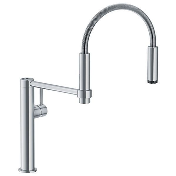 Эксклюзивный складываемый смеситель для кухни Franke Pescara – это уникальная модель с оригинальным дизайном и гибким шлангом. Изюминкой модели является возможность ее трансформации для удобства в эксплуатации. Смеситель с высоким изливом подходит для установки вместе с мойками средних и больших габаритов.